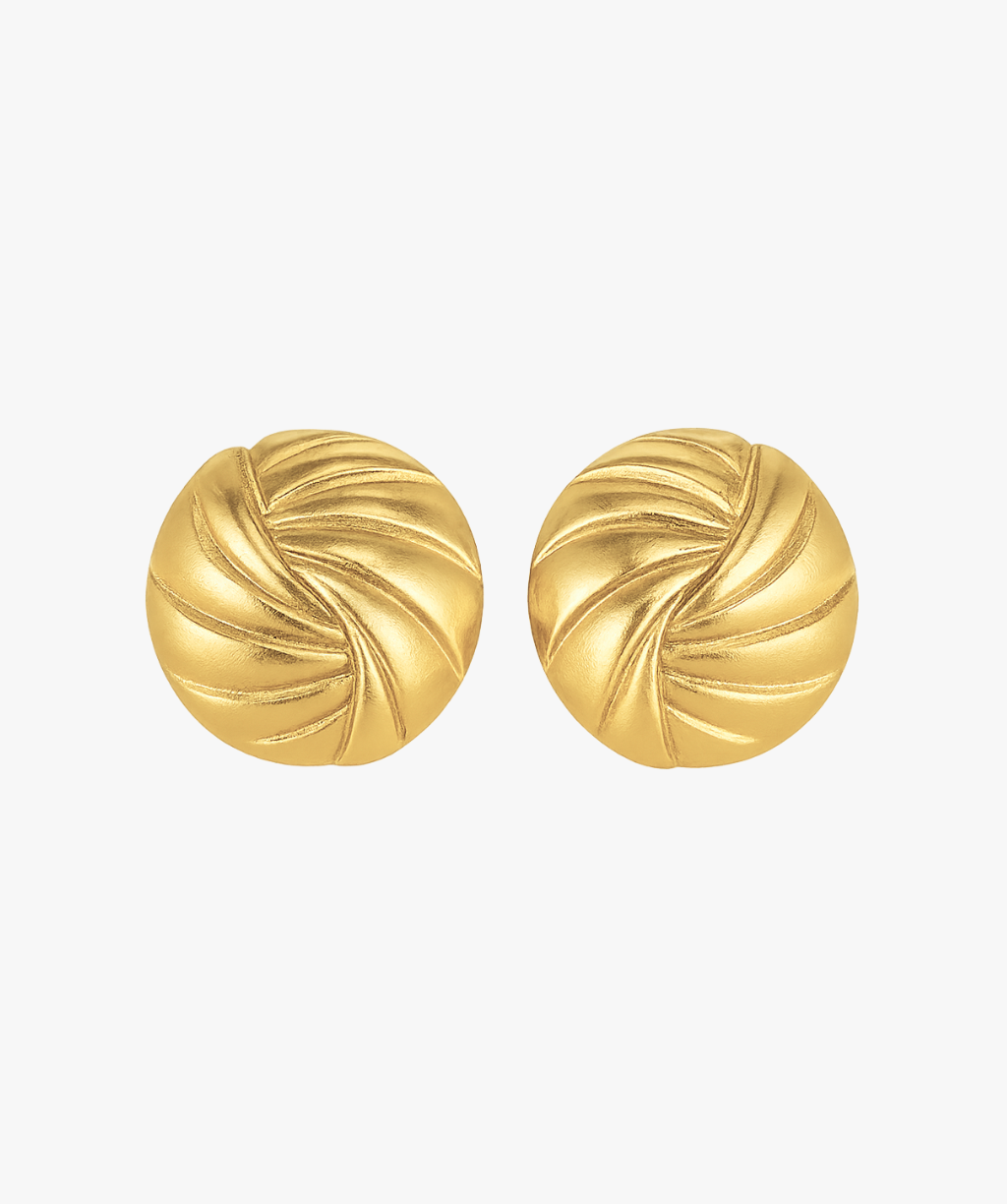 Our Iconic Lea Earrings are made of 18k gold plated stainless steel. The earrings have an round shape with line texture. True statement earrings for any occasion.