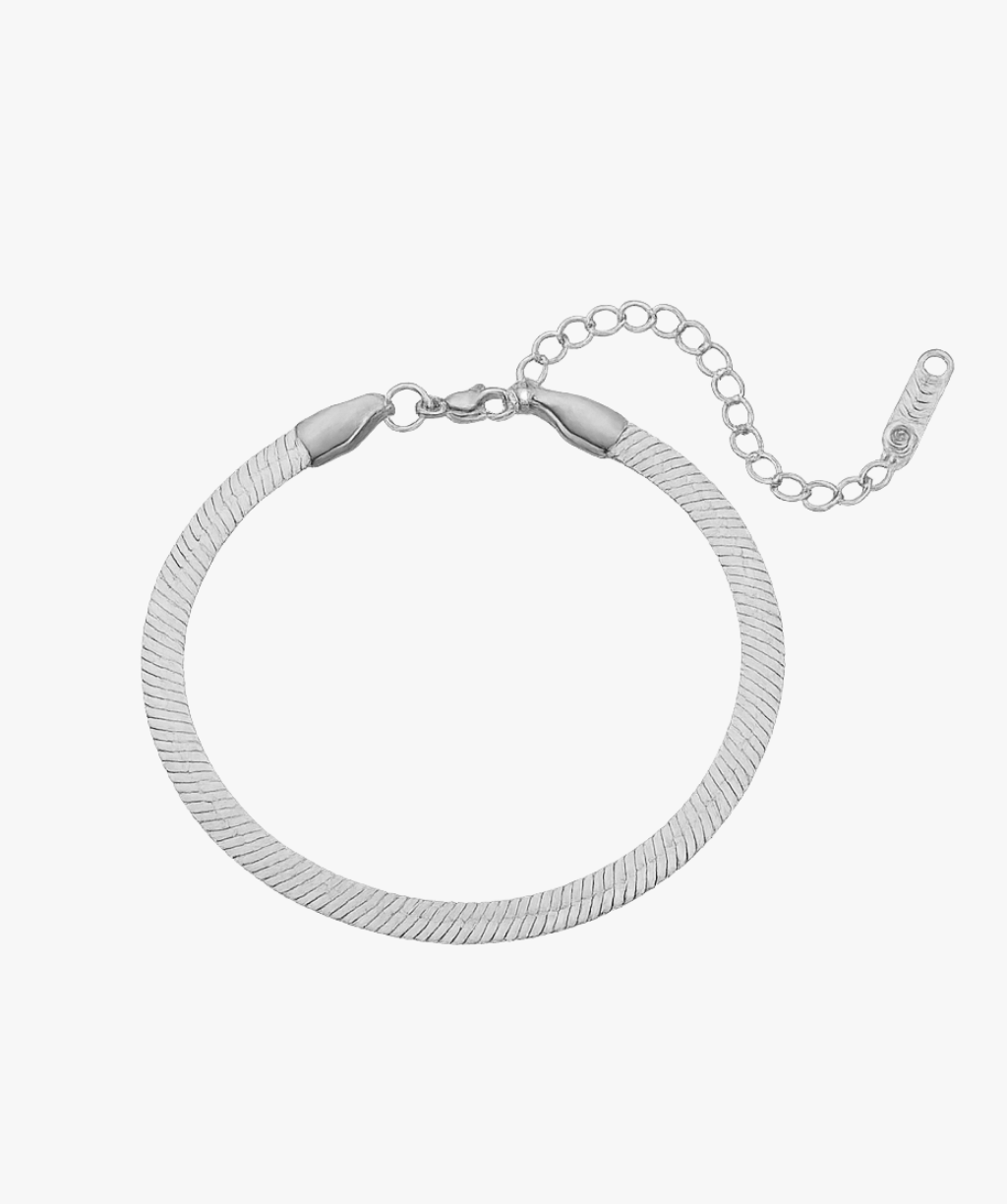 The Snake Chain Bracelet is made of stainless steel. The bracelet has a flat glade link bracelet. The size of the bracelet is 15 + 5 cm.