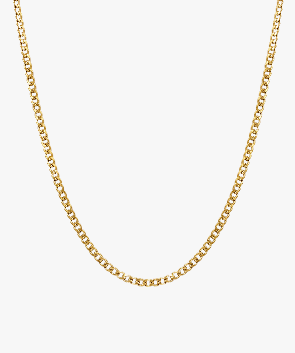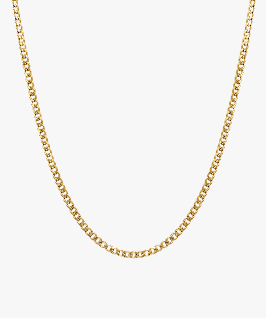 The Thin Curb Chain Necklace is made of 18k gold plated stainless steel. The necklace is 38 cm and has a 5 cm extension piece. A minimalist necklace with flat links which makes it a timeless item.